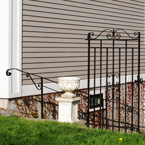 Formal Gate with handrail welcomes visitors to the garden.