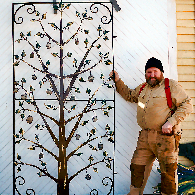 Andy with the Tree of Life Gate before installation